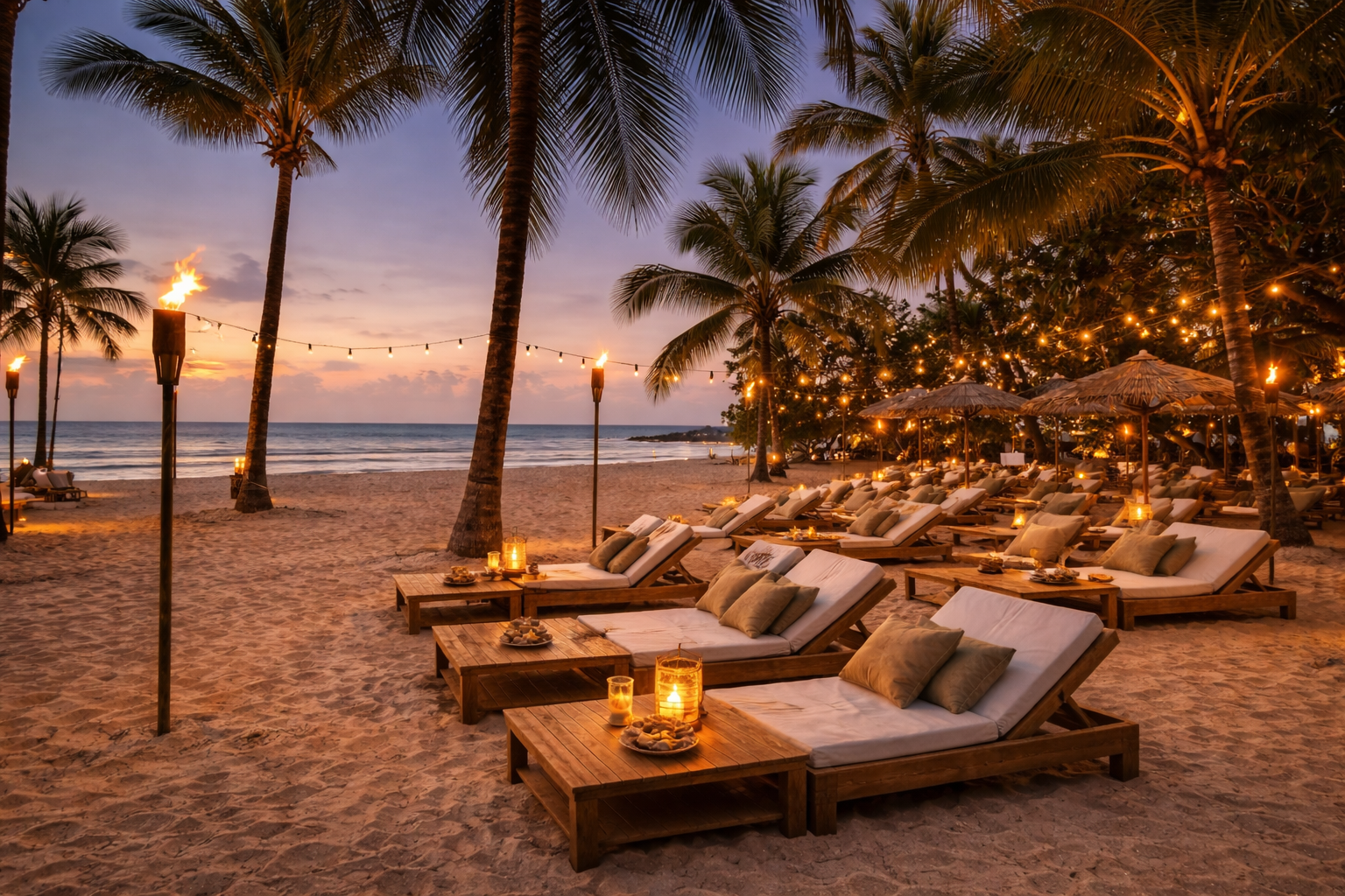 Tumbonas, arena fina, un ambiente tropical y atardeceres inolvidables crean el entorno perfecto para disfrutar al máximo de Las Terrenas.