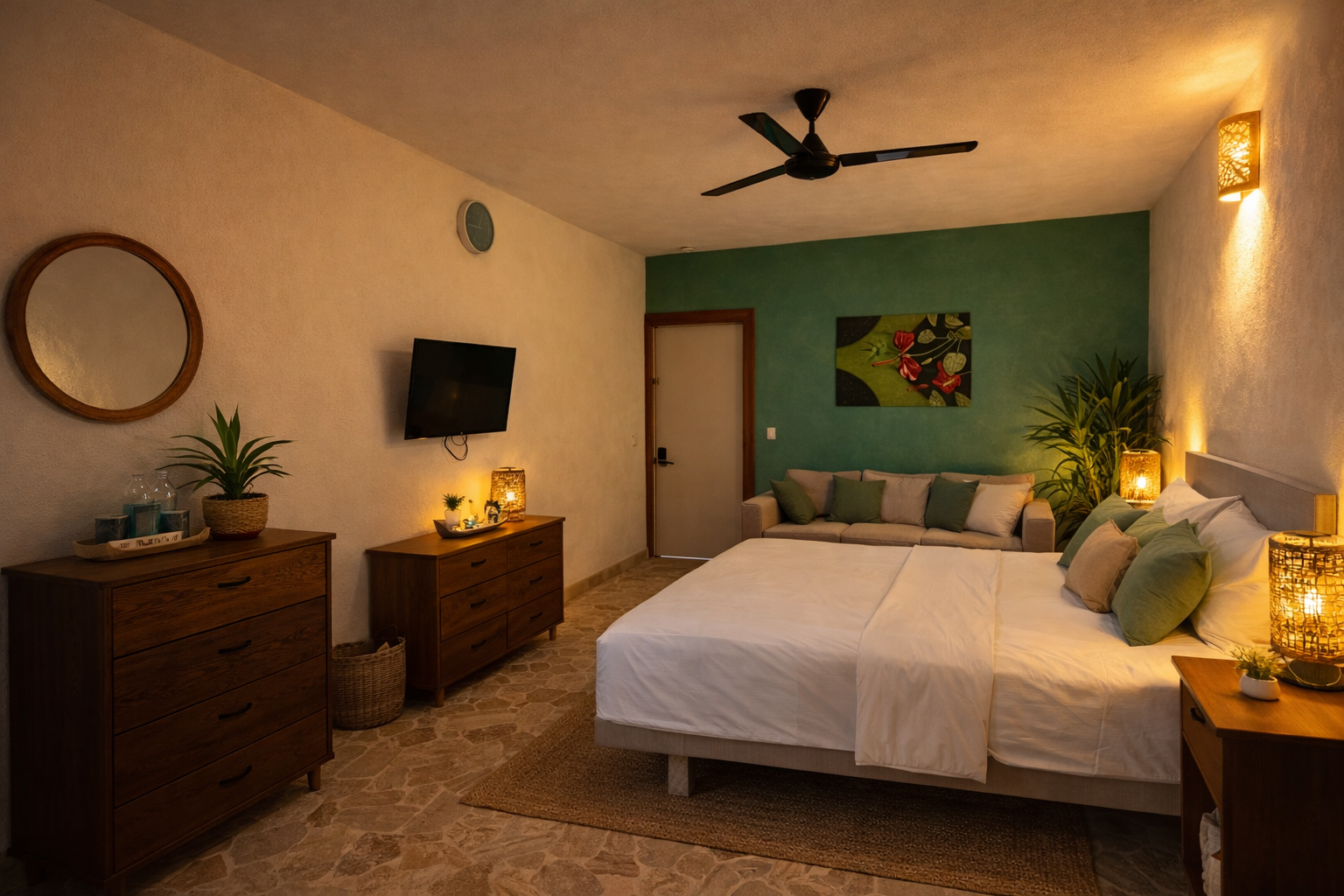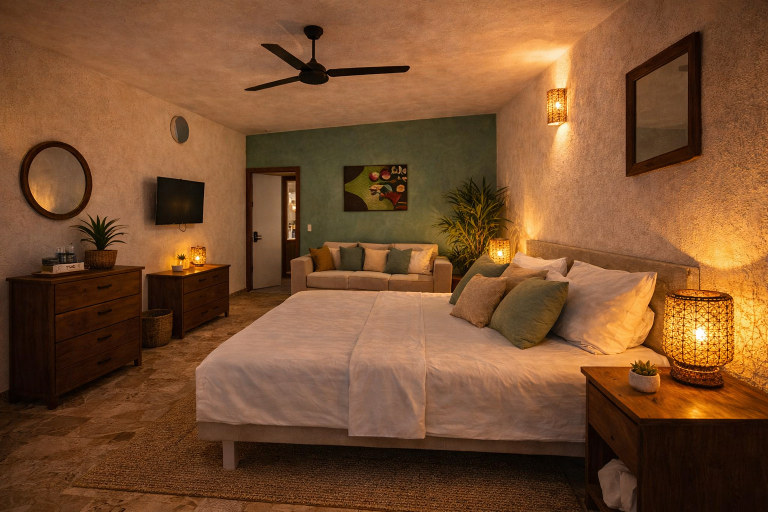 Nuestras habitaciones han sido diseñadas como verdaderos remansos de paz, combinando confort moderno, materiales naturales e inspiración caribeña.